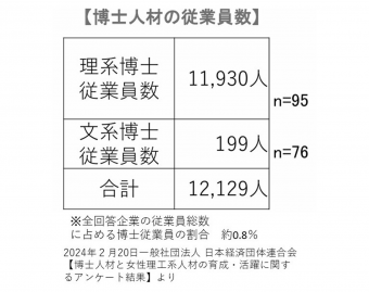 経団連のアンケート調査の結果からは、企業における博士人材の積極的な採用はまだ進んでいない実態が見えてきます。