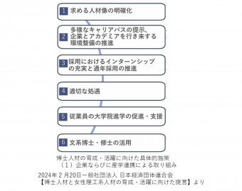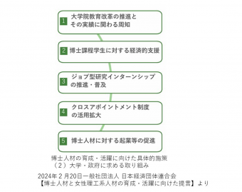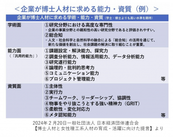 一般社団法人 日本経済団体連合会(以下、経団連)は、2024年2月に「博士人材と女性理工系人材の育成・活躍に向けた提言」を発表しました。